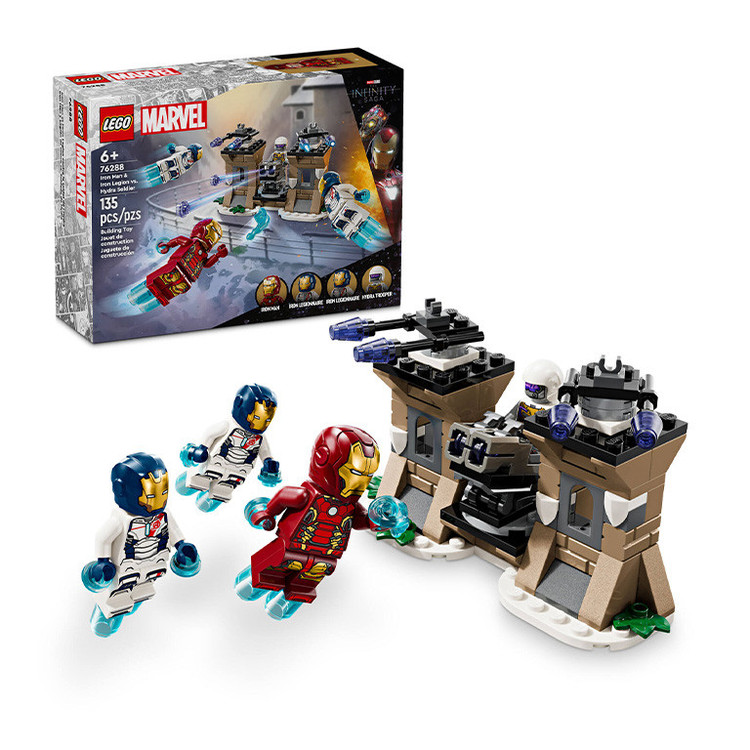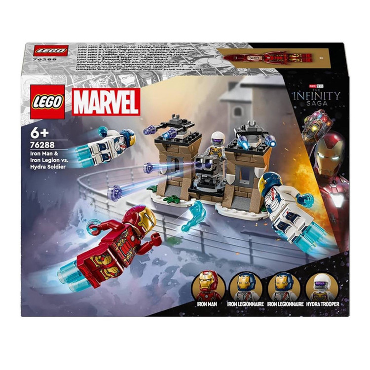 LEGO® Marvel Iron Man & Iron Legion vs. HYDRA Trooper (76288) یک اسباببازی ساختنی ماجراجویی است که صحنهای از فیلم Avengers: Age of Ultron از استودیوهای مارول را بازسازی میکند. در این صحنه، آیرون من و دو قهرمان Iron Legion به پایگاه سرباز HYDRA یورش میبرند. این ست ساختنی و بازی شامل ابرقهرمانها و همچنین ویژگیها و لوازم جانبی جذاب بسیاری است که این اسباببازی ساختنی را به یک هدیه عالی برای کودکان و تمام طرفداران Avengers شش ساله و بالاتر تبدیل میکند. این ست شامل ۴ مینیفیگور است: آیرون من، ۲ قهرمان Iron Legion و یک سرباز HYDRA. آیرون من ساختنی دارای یک نقاب بازشو است و یک بلاستر قدرتی در دست دارد. سرباز HYDRA یک شوتربردار دارد. آجرهای شفاف آبی رنگ موجود در این ست، حالتی ایجاد میکنند که انگار مینیفیگورها در حال پرواز هستند. پایگاه HYDRA ساختنی دارای ۲ شوتربردار است که به یک پایه چرخشی متصل شده و شما میتوانید سرباز HYDRA را روی آن قرار دهید تا به سمت ابرقهرمانهایی که به سمت او میآیند، هدفگیری کند. همچنین میتوانید با استفاده از دو پرتابگر موشک دوتایی (بدون قابلیت شلیک) روی برجهای پایگاه، حمله را دفع کنید. ویژگیهای دیجیتالی اضافی نیز در اپلیکیشن LEGO Builder در دسترس است. مینیفیگورهای ابرقهرمان: این ست بازی شامل ۴ مینیفیگور – آیرون من، ۲ قهرمان Iron Legion و یک سرباز HYDRA است. ست بازی ماجراجویی برای کودکان: ابرقهرمانان کوچک میتوانند همراه با آیرون من و Iron Legion در یک مأموریت برای حمله به پایگاه محکم HYDRA شرکت کنند و با سرباز HYDRA درگیریای پر از اکشن داشته باشند. جزئیات واقعی: مینیفیگور آیرون من دارای نقاب بازشو است و یک بلاستر قدرتی در دست دارد. سرباز HYDRA دارای یک شوتربردار است و آجرهای ویژه باعث میشوند که مینیفیگورها به نظر در حال پرواز باشند. هدیه LEGO® Marvel برای کودکان: این اسباببازی ساختنی ماجراجویی Avengers یک ایده هدیه عالی برای طرفداران ابرقهرمانان ۶ ساله و بالاتر است. ست بازی ۱۳۵ تکهای: LEGO® Marvel Iron Man & Iron Legion vs. HYDRA Soldier بیش از ۷ سانتیمتر ارتفاع، ۱۲ سانتیمتر عرض و ۷ سانتیمتر عمق دارد.