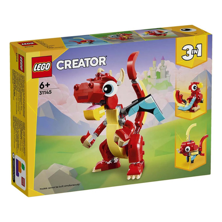 بچههای خلاق ۶ سال به بالا میتوانند با این مجموعه اسباببازی حیوانات ۳ در ۱ Red Dragon (31145) برای داستانهای سرگرمکننده به سرزمینی جادویی سفر کنند. دارای یک اسباببازی اژدها دوستانه است که دارای چشمهای بزرگ و بازوها، دستها، بالها، پاها، پاها، سر و دهان است، بنابراین بچهها میتوانند نحوه استفاده از آن را برای ماجراجوییهای زمان بازی و نمایش پس از آن انتخاب کنند. این مجموعه LEGO Creator دنیایی از امکانات بازی بیپایان را با انتخاب ساخت 3 اسباببازی حیوانات مختلف با استفاده از یک مجموعه آجر به بچهها میدهد. آنها می توانند یک اسباب بازی اژدهای قابل حمل بسازند، آن را به یک اسباب بازی ققنوس با پرهای رنگارنگ بازسازی کنند، آن را به یک اسباب بازی ماهی با باله های قابل حمل تبدیل کنند یا حیوان لگو خود را بسازند. اسباببازیهای LEGO Creator 3 in 1 هدایایی عالی برای بچهها با 3 مدل مختلف در هر جعبه میسازد، که بچهها از ساخت، بازسازی و دوباره ساختن آن هیجانزده خواهند شد. مجموعههای 3 در 1 آنها را برای ساعتهای بیشماری راضی نگه میدارد و طیف وسیعی از مدلها را ارائه میدهد که به بزرگترین علایق آنها علاقهمند است، از جمله وسایل نقلیه فوق سریع، حیوانات شگفتانگیز و صحنههای دقیق شهر. شامل 149 قطعه