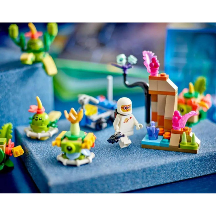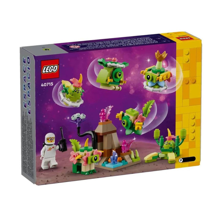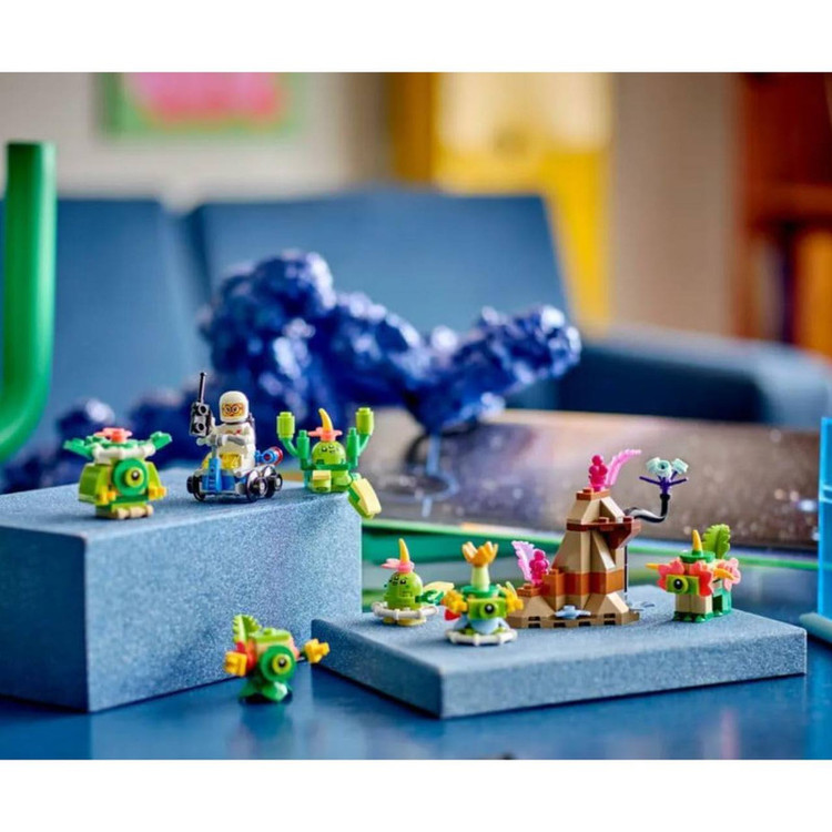 بسته بیگانه شامل یک مینی فیگور و شش موجود بیگانه منحصر به فرد است که ظاهراً گیاهان غیرعادی و عناصر دیگر را در بدن خود گنجانده اند. عناصر مختلف چشم چاپ شده آنها را به عنوان موجودات فضایی مشخص می کند که تنها با کاوش توسط فضانورد زن در کالسکه فضایی آجری او پیدا می شود. این فهرست نوید عناصر چهره و چشم جدید را برای بیگانگان و همچنین مناظر تزئین شده با سرخسهای رنگآمیزی و کریستالهای شفاف میدهد.
