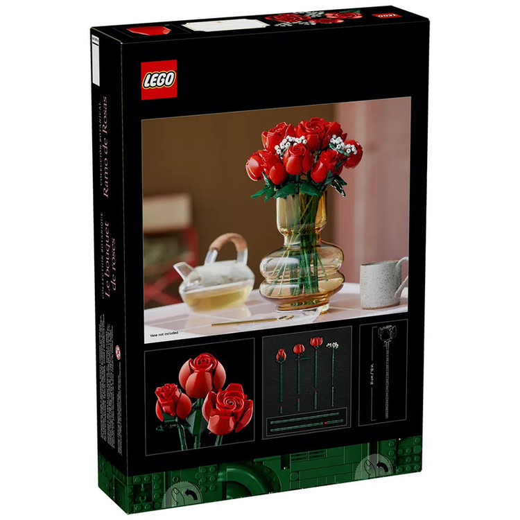 ساخت این دسته گل LEGO® سرگرم کننده است و دارای دوازده گل رز قرمز در مراحل مختلف شکوفه دادن است (4 گل رز در شکوفه کامل، 4 رز نیمه باز و 4 جوانه). به لطف ساقه های سبز بلند، می توانید به راحتی آنها را در گلدان به نمایش بگذارید. 4 شاخه گیپسوفیلا با گل های سفید کوچک، دسته گل را کامل می کند. این مجموعه شامل 6 کیسه سنگ و دستورالعمل ساختمانی جداگانه برای گل رز مصنوعی است که به عرض های مختلف باز می شود تا دیگران نیز بتوانند با آنها بسازند.