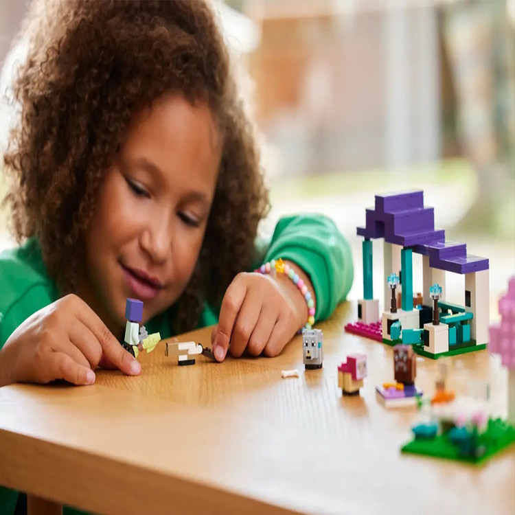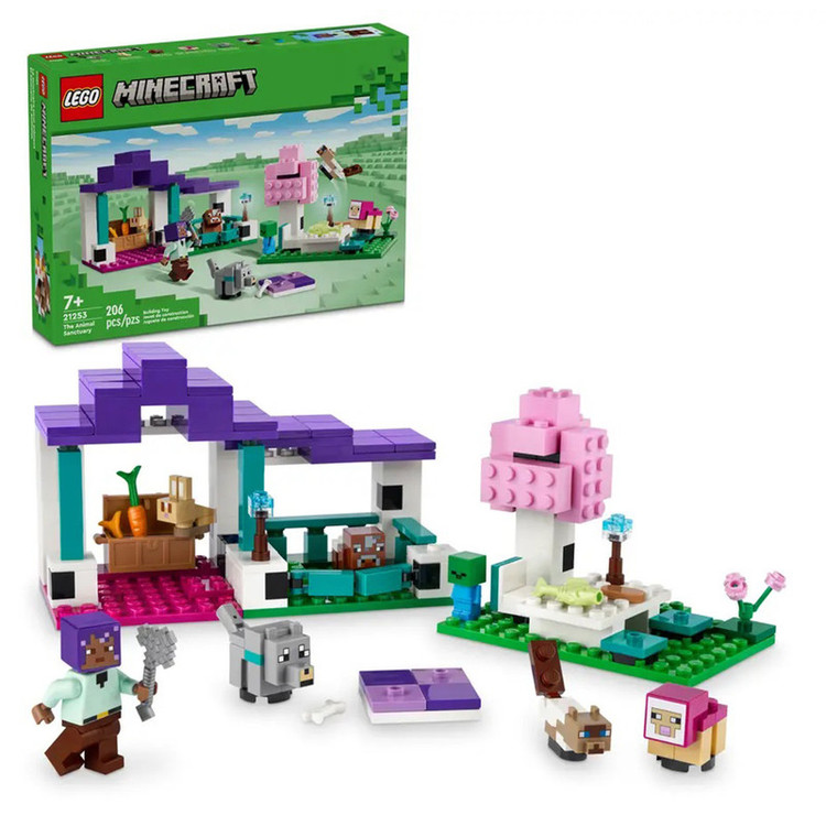 LEGO® Minecraft® The Animal Sanctuary (21253) یک ایده هدایایی همه کاره برای گیمرها و کودکان است. این اسباب بازی شامل 6 حیوان Minecraft برای دختران و پسران بالای 7 سال است که باید از آنها مراقبت کنند و اولین حضور شخصیت LEGO Minecraft Efe برای بازی نقش اکشن بازی است. این مجموعه حیوانات بیوم دشت شامل 3 قسمت است: فضای بازی حصارکشی شده با دروازه و اتاقی که صندوقچه ای پر از غذای حیوانات شامل استخوان، هویج و گندم را در خود جای داده است. منطقه پیک نیک با یک میز در زیر درخت؛ و فرشی که حیوانات خسته می توانند در آن استراحت کنند. علاوه بر نگهبان حیوانات، Efe، گروههای اوباش بچه مجموعه شامل یک گربه Minecraft، گوسفند سرخابی، گرگ، خرگوش، گاو و حتی یک Minecraft Baby Zombie هستند. این مجموعه ساختمانی لگو Minecraft برای کودکان یک ایده هدیه اسباب بازی بازی ویدیویی برای بچه ها و دوستداران حیوانات است. این مستقل را تشویق می کند
