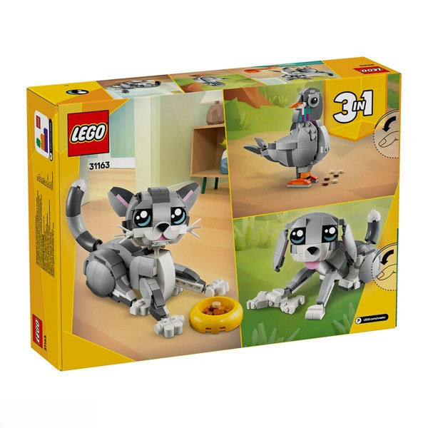 لگو سری کریتور گربه بازیگوش یک تجربه منحصربهفرد از ساخت و بازی با حیوانات خانگی را فراهم میکند. این ست خلاقانه امکان ساخت سه مدل متفاوت را با استفاده از همان قطعات ارائه میدهد. گربه با اسباببازیهایش، سگ با پاها و دم متحرک و کبوتر با سر 360 درجه چرخان. همراه با لوازم جانبی مانند توپ پشمی، کاسه غذا و موش اسباببازی. مدلهای قابل ساخت گربه بازیگوش: سر، گوشها، دم و پاهای متحرک قابلیت نشستن، ایستادن و پریدن همراه با توپ پشمی و کاسه غذا موش اسباببازی برای سرگرمی سگ دوستداشتنی: حالتهای مختلف قابل تنظیم سر، دم و پاها و پنجههای متحرک طراحی شاداب و بامزه همراه با استخوان کبوتر کنجکاو: سر با قابلیت چرخش 360 درجه امکان نوک زدن به دانهها طراحی واقعگرایانه همراه با خرده نان است